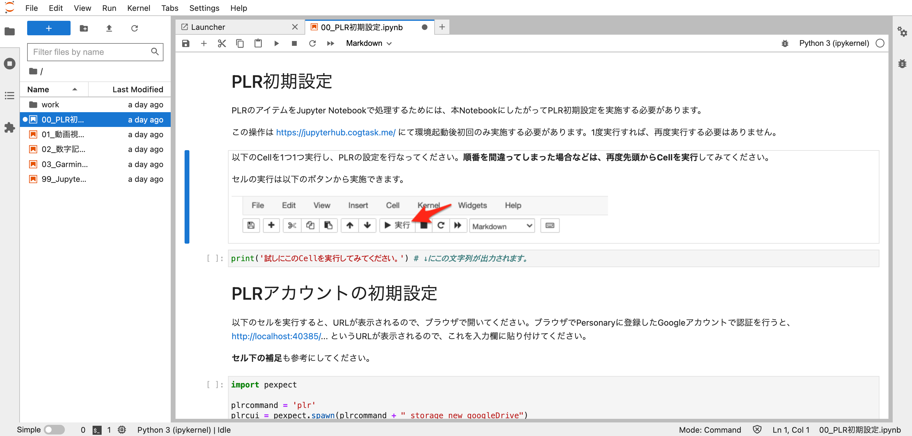 このようにすると、PC上でJupyter Notebookを利用することができます。使い終わったら、2.のターミナルを Control + C キーで中断します。