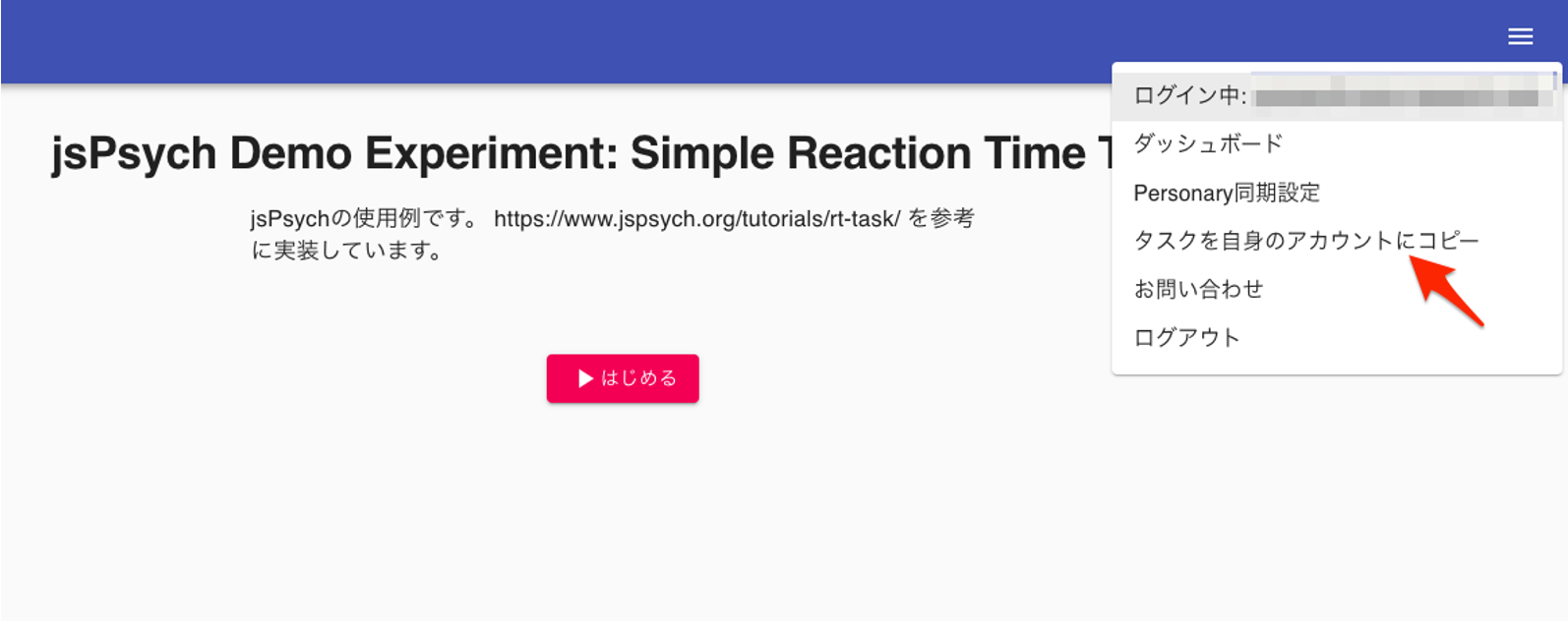 タスクをコピーするには、画面右上のメニューから タスクを自身のアカウントにコピー を選択します。