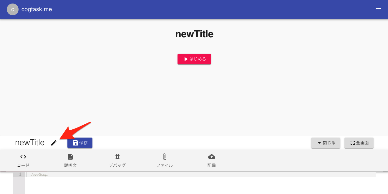 newTitleというタスクが作成されますので、タスク名を変更します。タスク名右の編集ボタンをクリックします。